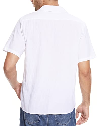 LVCBL Camicia estiva da uomo a maniche lunghe e a maniche corte, con tasca sul petto, vestibilità regolare, bianco, M