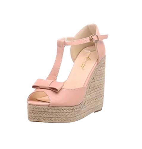 Lvguang Sandali Donna Zeppa Elegant Sandali Scarpe Piattaforma Impermeabile Tacco Alto Signora Tacchi Alti Pink,Asia 35(22.5cm)