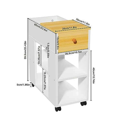 Lvhcmfohm Comodino Stretto con Stazione di Ricarica, Comodini Camera da Letto con Ruote (30x60x60cm)