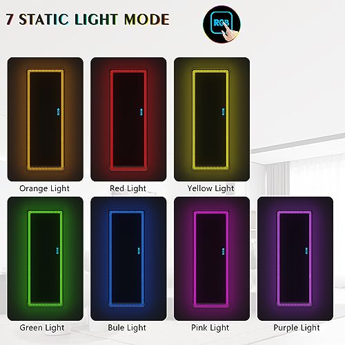 【Specchio RGB con 7 modalità dimmerabili】 Specchio LED a figura intera con 7 colori dimmerabili, così puoi personalizzare il colore di sfondo che desideri in qualsiasi momento. La luce frontale dello specchio illuminato è abbastanza luminosa per trucco, rasatura o trattamenti di bellezza.