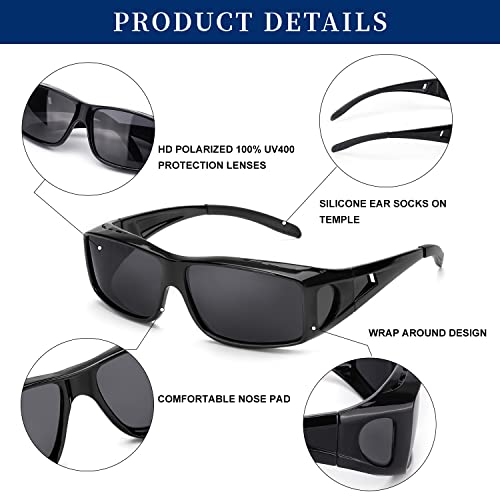LVIOE Sovraocchiali Da Sole uomini e donna, Copertura polarizzati per chi porta occhiali da vista, Protezione UVA e UVB (nero/Grigio)