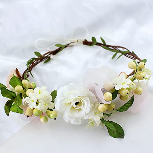 Lvjkes Coroncina di Fiori,Coroncina Fiori per Capelli,Coroncina Fiori Bambina,Fasce del Fiori con Il Nastro Elastico Regolabile,Le Ragazze/Copricapo da Sposa per Spiaggia per Festa di Nozze
