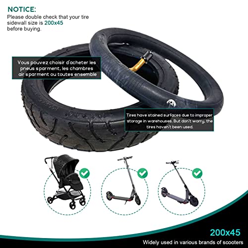 ☛ 【Materiale Premium】 Il nostro pneumatico per scooter elettrico 200x45 e camera d'aria realizzati in materiale di gomma di alta qualità, che è ad alta resistenza e resistenza all'usura, resistenza agli urti e antiscivolo. È durevole da usare e può mantenere una lunga durata.