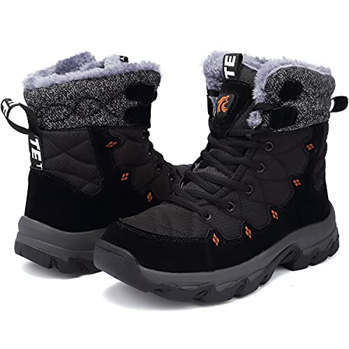 Lvptsh Stivali da Neve Uomo Donna Scarpe Invernali Stivaletti Fodera Caldi Impermeabile Stivaletti Outdoor Antiscivolo Scarponi Trekking,Nero,EU40