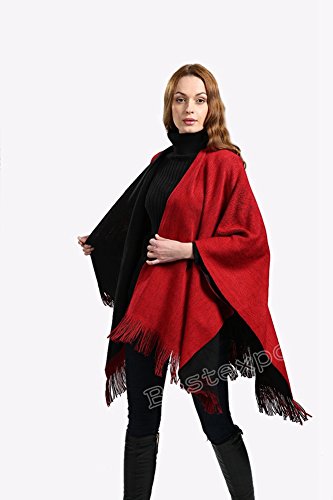 LvRao Comodo Caldo Cardigan Poncho Reversibile Donna Mantelle con Nappa (Rosso, Taglia Unica)