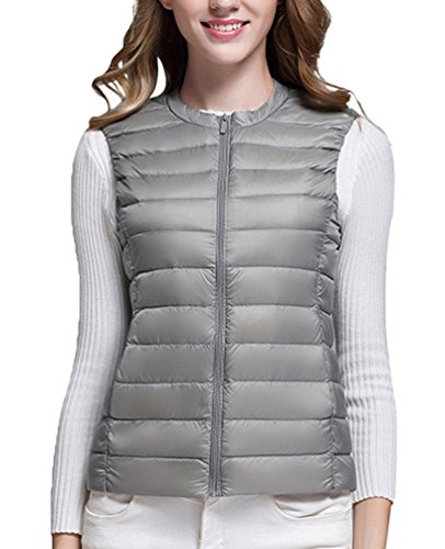 LvRao Donna Giacche di Piuma Senza Maniche Collo Rotondo Canottiera Piumino Trapuntato Packable Gilet Giù (Grigio, CN S)