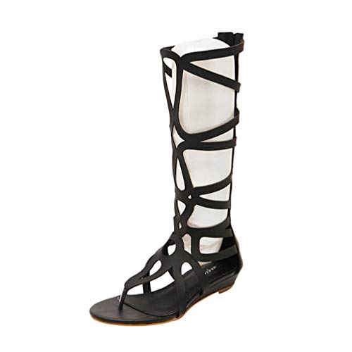 LvRao Donna Sandali Gladiatore Zeppe Zip Estive Basse Ginocchia Stivali Sandalo (Nero, EU 34)