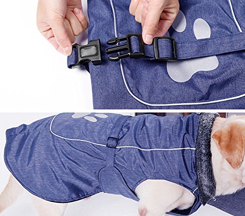 LvRao Impermeabile Sherpa Regolabile Caldo Cappotto e Giubbotto per Grande Cani Animali Domestici con Riflettenti Zampa Design (Blu, S)