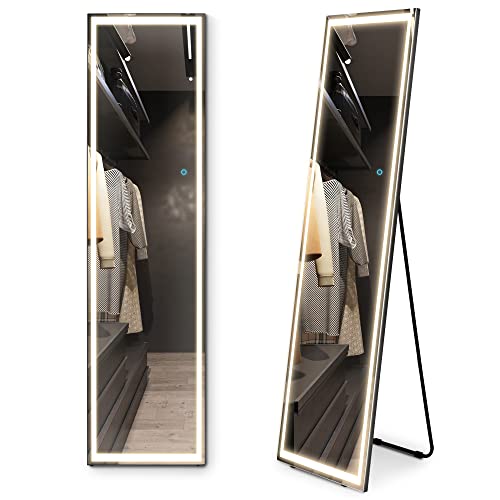 LVSOMT Specchio da parete e da pavimento, 160 x 40 cm, con cornice in lega di alluminio, per camera da letto, soggiorno, spogliatoio