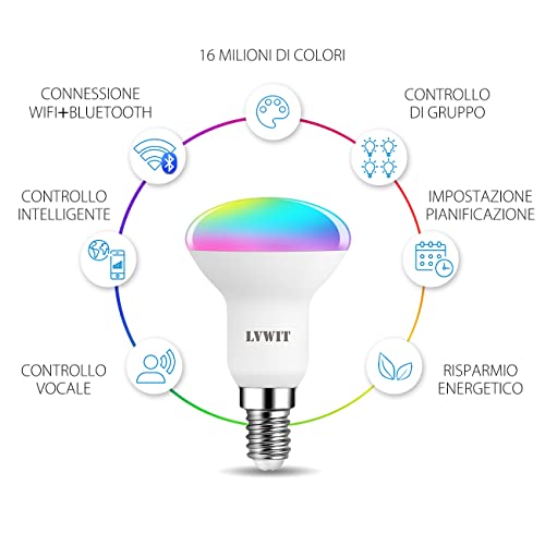 LVWIT Lampadina LED Riflettore Smart Wifi Attacco E14, Forma R50, 4.9W Equivalenti a 40W, 470Lm, Compatibile con Alexa, Echo e Google Assistant, Intelligente Dimmerabile, Controllo Remoto App, 2 Unità