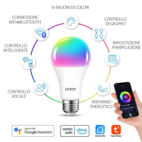LVWIT Lampadina LED Smart Wifi Con Attacco E27,12W Equivalenti a 100W, 1521Lm,Compatibile con Alexa,Echo and Google Assistant,Intelligente Dimmerabile,Controllo a Distanza da App,Pacco da 4 Pezzi