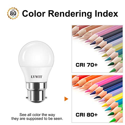 LVWIT B22 LED Light Bulbs, 470Lm G45 5W Equivalent 40W, 2700K Warm White, Non-Dimmable LED Light Bulb 6 Packs