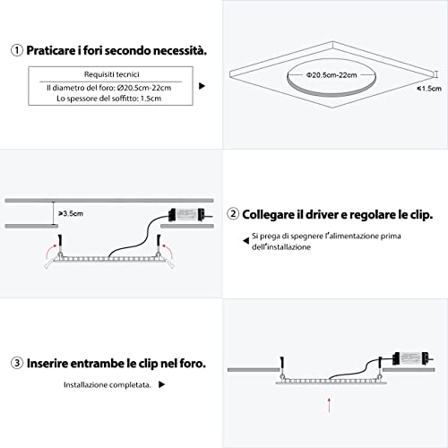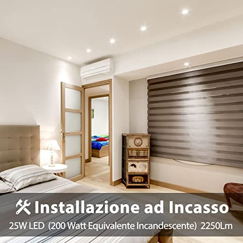 LVWIT 2x Pannello LED Rotondo da Soffitto - 25W equivalente a 200W, Plafoniera LED da Ufficio da incasso, 2250 Lumen, Colore Bianco Neutro 4000K. 225 x 21 mm - Pacco da 2 Pezzi.