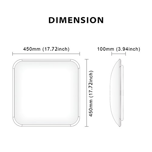 LVWIT Plafoniera a LED da soffitto - 24W Equivalente a 144W, 1920 lumen, 3000K Colore Bianco Caldo, Non Dimmerabile - 45 x 45 cm.