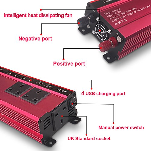 Il display a LED mostra la tensione di ingresso della batteria, la tensione di uscita dell'inverter. Dispone di 4,8 A 4 prese USB 3 AC (prese britanniche)