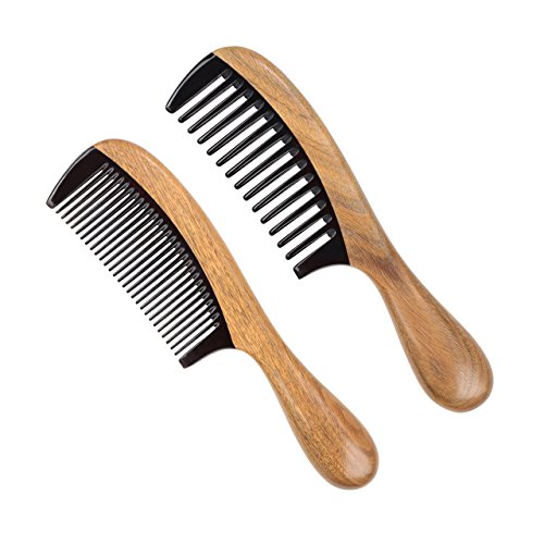 LWBTOSEE Pettine di legno Pettine di legno largo e fine, legno di sandalo verde anti statico Pettine di corno districante per donne, uomini, pettine per capelli spessi, ricci e capelli ondulati