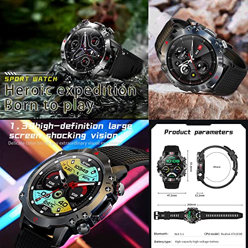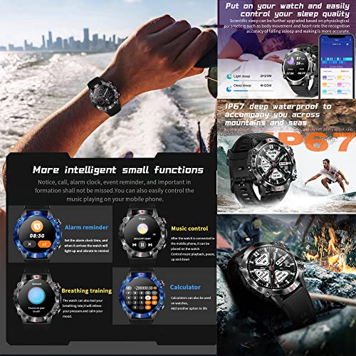 LWEARKD Smartwatch Uomo Chiamate e Risposta Bluetooth, 107 Sport Smartwatch Contapassi Cardiofrequenzimetro Pressione Sanguigna SpO2, Monitoraggio del Sonno, Orologio Fitness per Android iOS (Nero)
