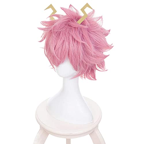 Lwiuentx MHA Cosplay Ashido Mina Parrucca corta rosa Pink+ berretto per parrucca gratuito