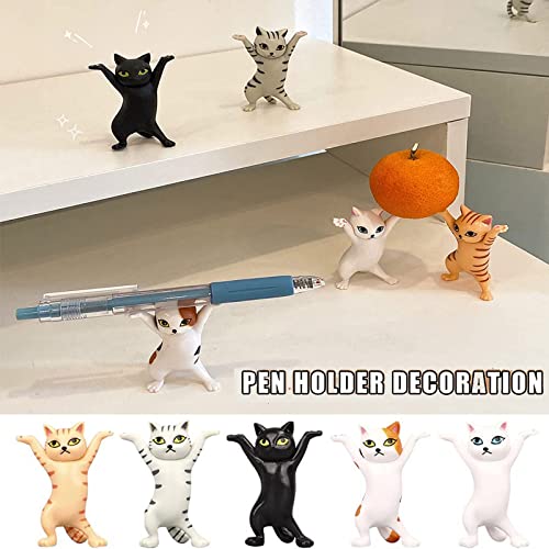 Lwtsrp 5 Pezzi Gatti Danzanti e Portapenne, Ornamenti Gatto PVC Modello, Portapenne Gatto Modello, Cat Pen Holder, Decorazioni per Gatto Danzanti, per l'ufficio e la Casa, Decorazioni per Scaffali