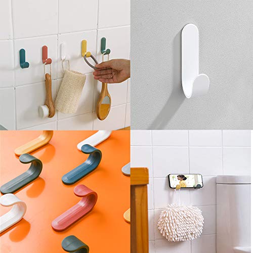 LWZko 12 Pezzi Ganci Adesivi Parete per Appendere, Gancio Parete Appendino, Ganci Adesivi in Plastica, ABS Plastica Creativo Carina J Forma Ganci per Asciugamano, Chiavi, Cappotto, Borse (6 Colori)