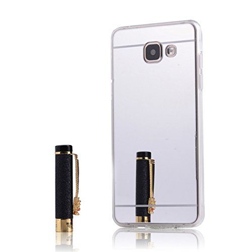 LXHGrowH Custodia a Specchio Gel Silicone TPU Sottile Cassa per Samsung Galaxy A5 2016 5.2'', Case Cover Protettiva in Argento