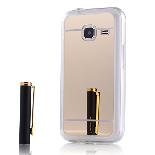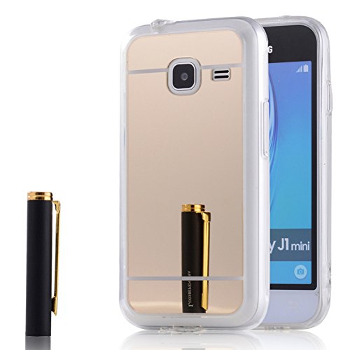 LXHGrowH Custodia a Specchio Gel Silicone TPU Sottile Cassa per Samsung Galaxy J1 Mini (2016) J105, Case Cover Protettiva in Oro
