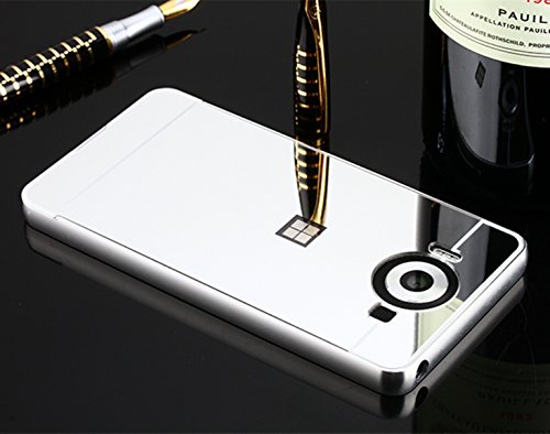 LXHGrowH Microsoft Lumia 950 Cover, Custodia a Specchio per Microsoft Lumia 950 Alluminio Frame in Metallo Custodia Bumper Caso Cellulare Cover Case Protettiva in Argento