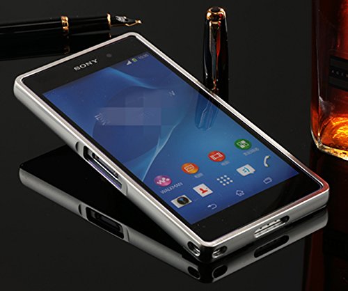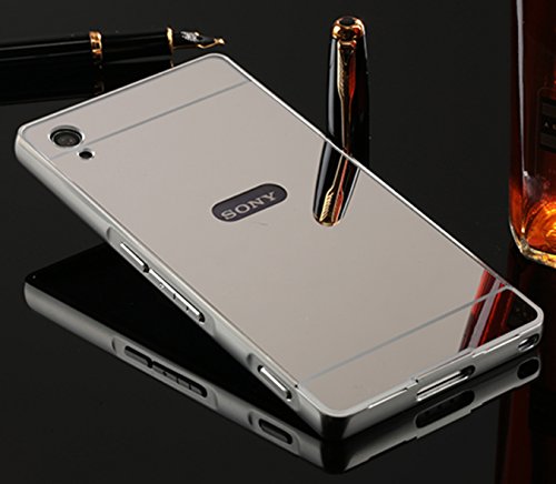 LXHGrowH Sony Xperia Z2 Cover, Custodia a Specchio per Sony Xperia Z2 Alluminio Frame in Metallo Custodia Bumper Caso Cellulare Cover Case Protettiva in Argento