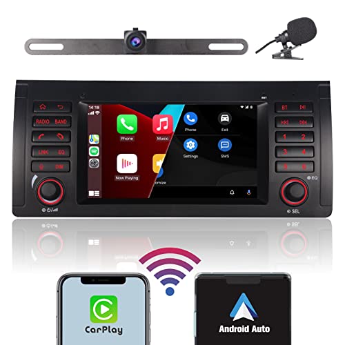 LXKLSZ Autoradio per BMW E39 E53 serie 5 X5 M5 compatibile con Wireless Carplay/Android Auto con IPS touch screen da 7 pollici/Bluetooth/Mirror Link/FM/AM/USB/Telecamera per retromarcia