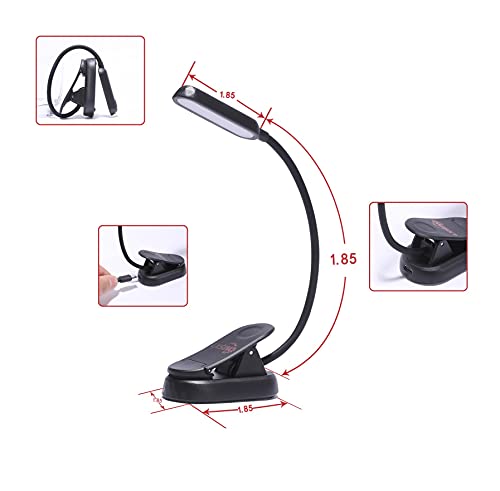 Collo di cigno flessibile e clip in gomma: il collo di cigno è flessibile e può essere regolato nella posizione desiderata. Perfetto per testiere, lettura da tavolo, viaggi, campeggio, lettura di bambini, apprendimento, luce del computer portatile, cucito e così via. Il cuscinetto in gomma sulla clip protegge i lati da danni e offre un bloccaggio sicuro e stabile.