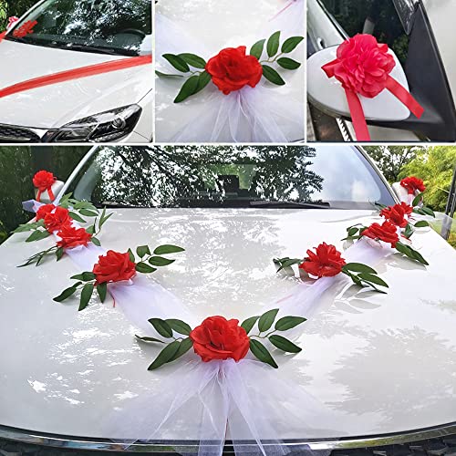 LxwSin coccarde matrimonio auto, macchina per matrimoni con nastro, decorazione auto sposi, rossa romantico rosa decorazione per auto da matrimonio, rattan da matrimonio