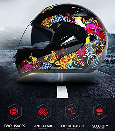 LXYYSG Casco Moto Integrale Casco Moto Modulare Integrato Flip-Top con Doppia Visiera Casco Moda DOT ECE Approvato per Casco Unisex-Adulto B,M=57-58CM