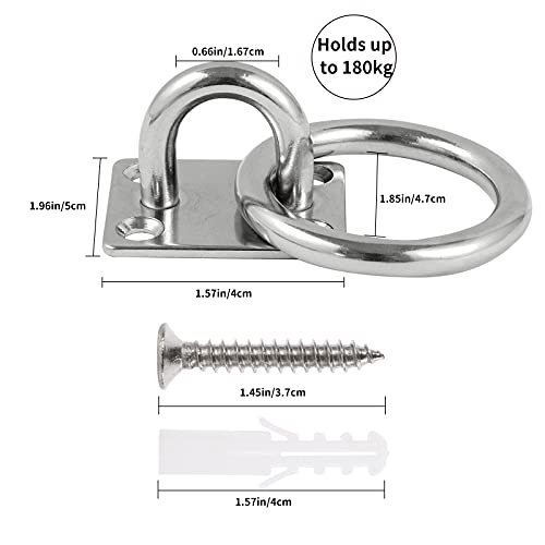 【2 pezzi di gancio M8】: M8 Piastra a occhiello Gancio a soffitto 304 in acciaio inox per soffitto e fissaggio a parete Dimensioni: 4 cm x 5 cm, carico massimo 180 kg Set di 2, fornito con viti in acciaio inossidabile.