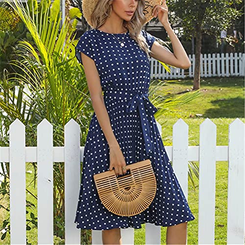 LYAZFC Abito da Donna Plissettato con Lacci e Maniche Corte a Pois Estivi di Media Lunghezza