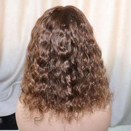 LYBYL Human Hair Bob Wig Lace Front Wig Bob 4X4 Lace Closure Wigs Human Hair 30 Light Brown Wig Glueless Wig Water Wave Brazilian Virgin Hair Wig For Women 14 Inch(35.55cm)