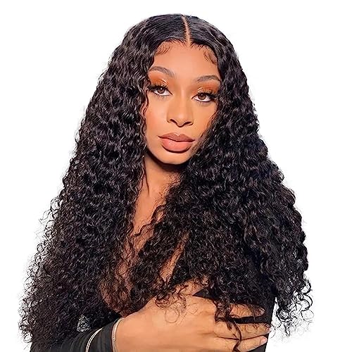 LYBYL Parrucca Donna Human Hair Wigs Kinky Curly 4x4 Lace Closure Wig With Natural Hairline Natural Color Kinky Curly Wig 9A Brazilian Virgin Hair Wig 22 Inch(55.88cm)