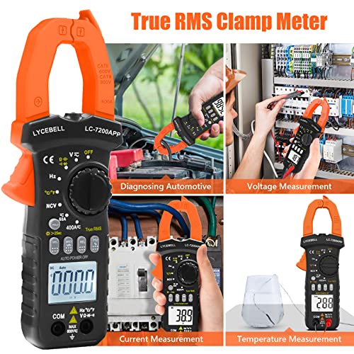 LYCEBELL Pinza Amperometrica, LC-7200APP Multimetro Digitale Bluetooth per AC/DC Corrente Tensione Resistenza Capacità Frequenza Diodo Continuità Temperatura NCV
