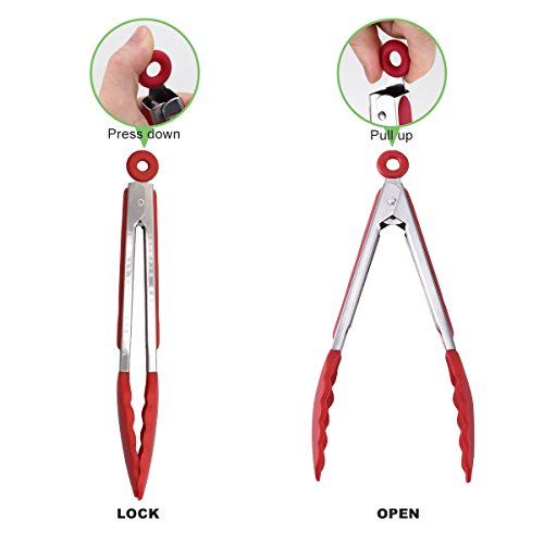 Lydaz Set di 10 utensili da cucina in silicone antiaderente resistente al calore (Rosso)