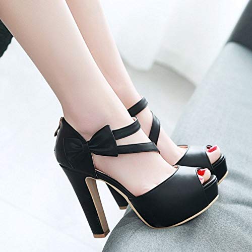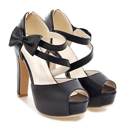 Lydee Donne Moda Scarpe Estive Tacco Blocco Piattaforma sandali Cinturino alla Caviglia Tacchi Nozze festa Bow Scarpe Black Dimensione 34