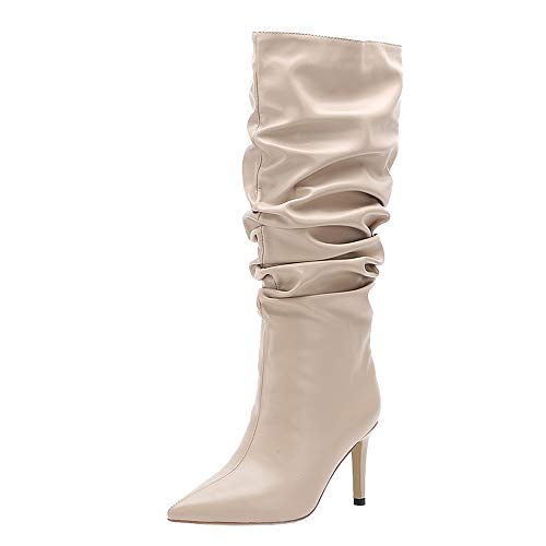 Lydee Donne Moda Stivali a Metà Stiletto Heels Pull On Slouch Stivali Festa Half Stivali Animal Print Apricot Dimensione 33