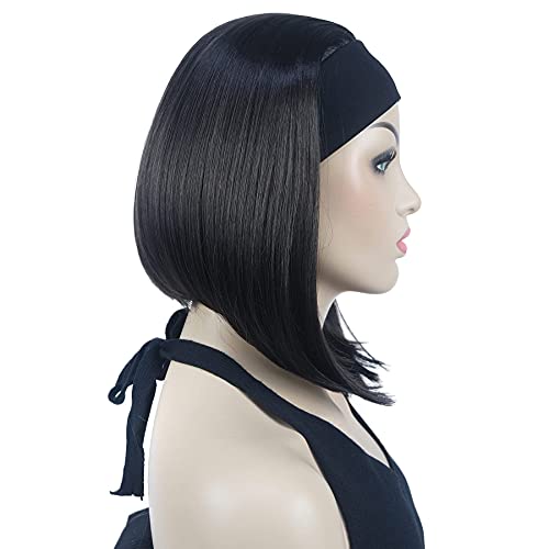 Lydell, Parrucca sintetica corta a caschetto con capelli lisci e fascia (marrone scuro)