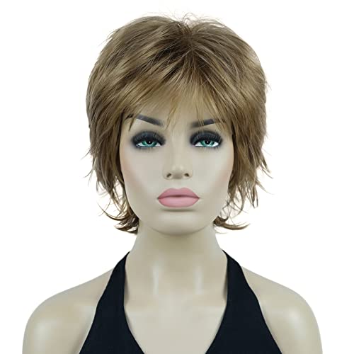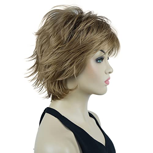 Lydell Parrucche sintetiche ondulate ondulate a strati corti (marrone rossastro dorato)