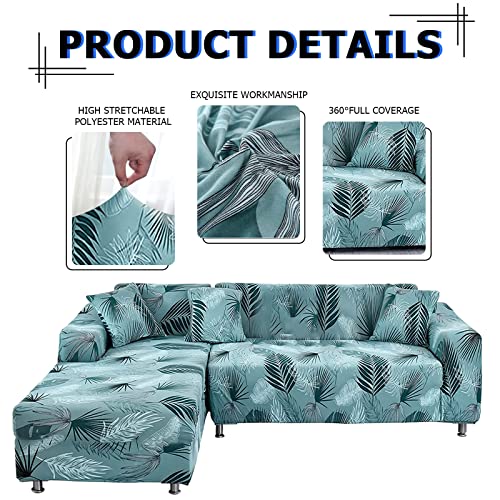 Lydevo Copridivano con Penisola Elasticizzato,Copridivano Angolare a Sinistra/Destra Universale con 2 Federi,Fodere Divano Penisola Forma di L,Chaise Longue Sofa Cover(1+2,Foglie Blu)