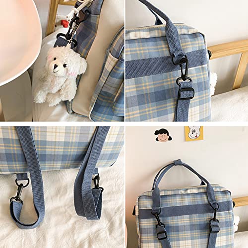 LYEAA Borsa a tracolla portatile in tela scozzese da donna alla moda JK borsa da scuola per studenti borsa per ragazze zaino di grande capacità zaino a tracolla, Blu