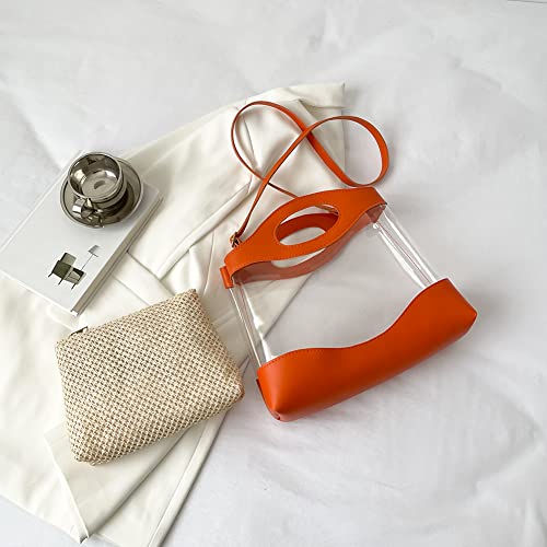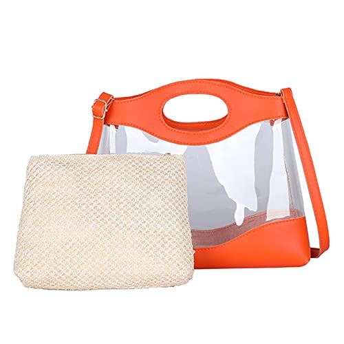 LYEAA 2pcs Borse a Spalla Trasparente Delle Donne Paglia PVC Trasparente Casual Totes PU Borse A Tracolla in Pelle per Ragazza Borsa Messenger Borsa A Mano Set Due Pezzi, Arancione