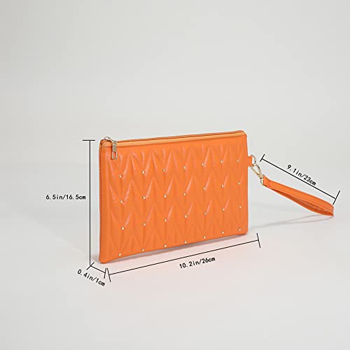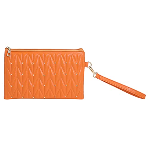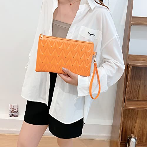 LYEAA Moda Rivetto Pochette In Pelle Solido Donne Busta Trapuntato Ricamato Filo Sera Borsa Frizioni Femminili Borsa, Arancione