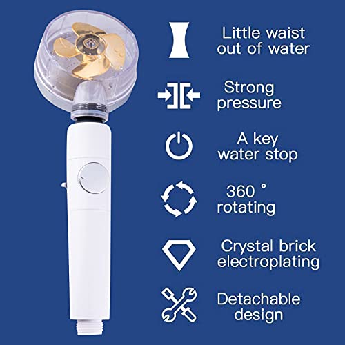LYEAA - Soffione doccia Power ad alta pressione, con elica, doccetta a turbocompressa a 360°, girevole ad alta pressione, con ugello spray in ABS per risparmio idrico