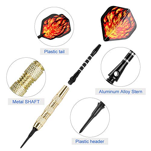 √ Freccette punta plastica resistenti erano fatte di materiale eccellente nella forma esatta esatta. Sono particolarmente adatti a tutti i bersagli elettronici. La superficie opaca è stata progettata in modo che il dardo si mantenga meglio nella tavola per evitare il rimbalzo, per proteggere i voli da danni causati da colpi di altre freccette, il volo può essere dotato di una protezione di volo. La protezione del volo migliora anche il bilanciamento delle freccette.