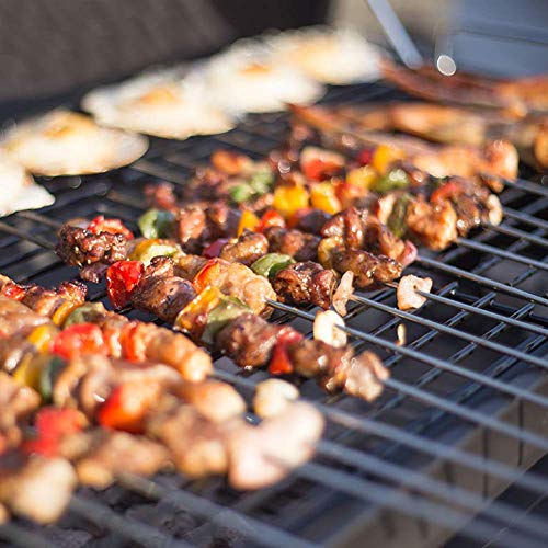 Lyeiaa Set di 4 tappetini Barbecue tappetini BBQ, Grill Mat antiaderenti riutilizzabili Stuoie Grigliata Resistente al Colore Senza PFOA con 10 spiedini Una Spazzola in Silicone e Pinza per Barbecue