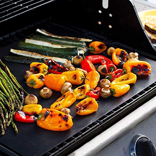 ✔ Tappetino BBQ da griglia di alta qualità è antiaderente e riutilizzabile. Il materiale è in fibra di vetro, rivestito con PTFE (Teflon), estremamente stabile e durevole. Set di 4 tappetini per barbecue, 40 x 33 cm + pinza da 20 cm + 10 spiedini + spazzola in silicone - riutilizzabile, la dimensione perfetta di 40 x 33 cm si adatta perfettamente a qualsiasi griglia o forno. Si può facilmente tagliare con le forbici e si adatta quindi assolutamente a qualsiasi griglia e teglia.